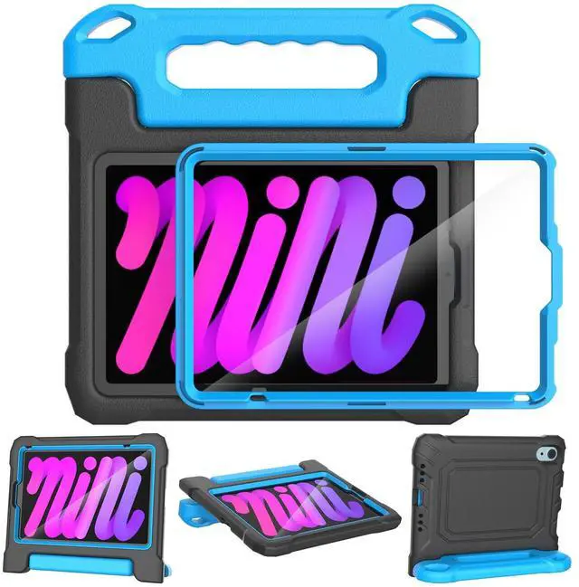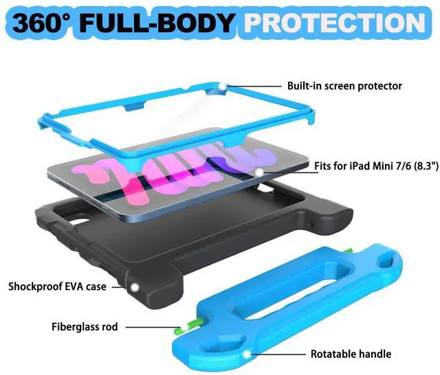 Full Protection: Kids Case for iPad Mini 7th/6th Generation, it's made from a durable, kid-safe, lightweight, and shock-absorbing thick EVA material, guarding against bumps and drops ^^ Built-in