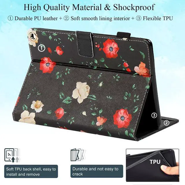 Adjustable Stand Cover: Multiple stand positions for hands-free viewing, provid different viewing angles & keyboarding angles. 2.