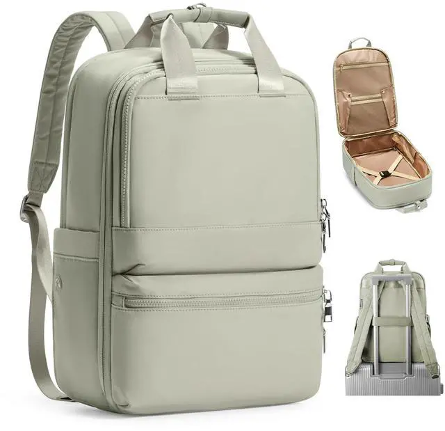 It has a luggage tie-down strap that can be inserted into the luggage slider bar. Can be boarded directly without checking in. Suitable for traveling, commuting, business, and college. ^^ Separate Laptop CompartmentThe laptop backpack is suitable for 15.6 inch and below laptops. Built-in thick sponge protects your laptop from bumps and makes your back more comfortable. ^^ Size And WeightThe external dimensions (L*W*H) of the travel bag are 15.74" * 12.2" * 5.51"; its weight: 2.16 lbs/ 0.98 kg. Shoulder straps of the backpack can be adjusted from 16.92 inch- 38.97 inch. These sizes are measured manually, the existence of 1-3cm error is normal.