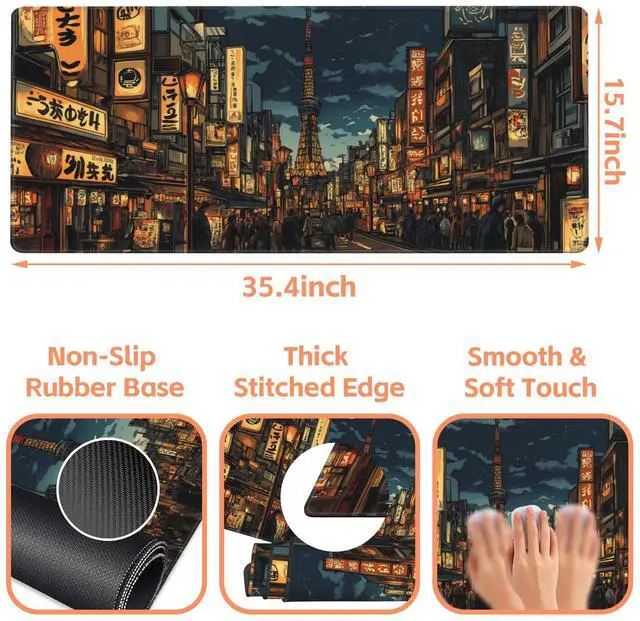 NIYLYNSYN Mouse Pad Large Bustling Street Non-Slip Game Desk Mat with Stitched Edge Laptop Keyboard Desk Pad for Work Home Gaming (35.4 x 15.7 Inches)