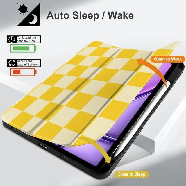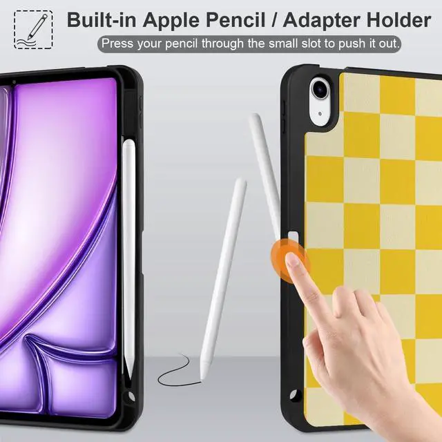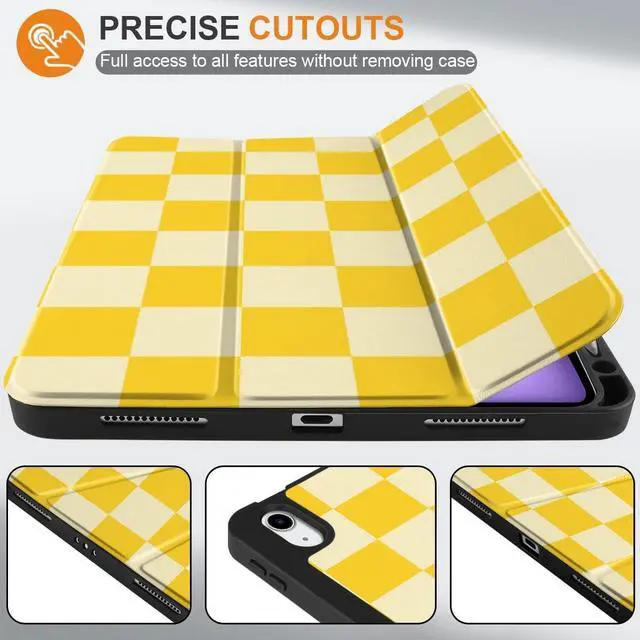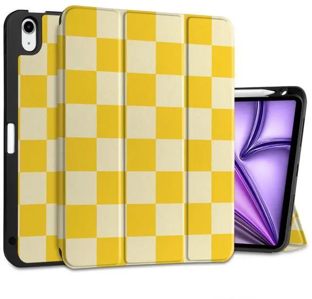 MEEgoodo Case for iPad Air 11 inch (M3) 2025/ (M2) 2024, Cover for iPad Air 5th Generation/iPad Air 4th Generation 10.9 inch 2022 2020, Tablet Cases with Pencil Holder, Yellow Squares