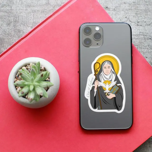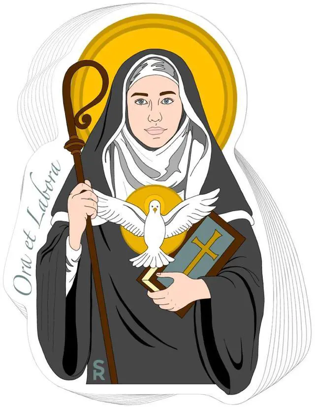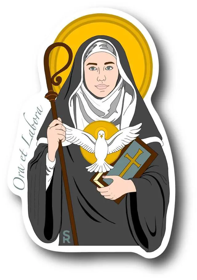 Catholic Concepts ^^ St. Scholastica 4 x 2.25 Vinyl Sticker Label Decal Waterproof Cool Accessory for Laptop, Hard Hats, Water Bottles, Scrapbooks, Folders, Cell Phone ^^ 10-Pack