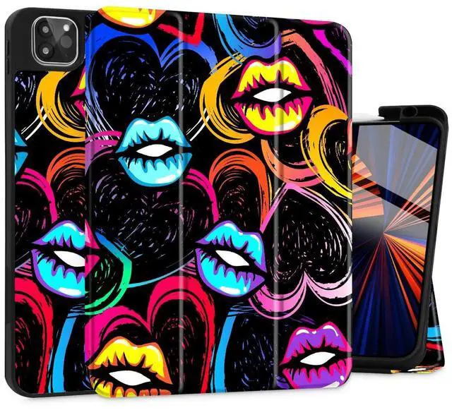 Mektron for iPad Pro 12.9 M2 2022 Case Compatible iPad Pro 12.9 inch 6th/ 5th/ 4th/ 3rd Gen Cover 2021 2020 2018 Tablet Case with Soft Back Cover for 12.9-inch iPad Pro, Colorful Lips
