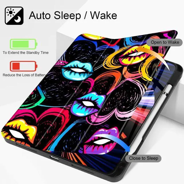 Use: Featuring a trifold design that allows for two positions: 65 movie mode can act as a screen stand; 30 input mode acts as a keyboard stand. Easy to installThe soft silicone protective sleeve is easy to install and won't scratch your iPad. Multi-pattern ChoiceThe unique patterns created by the designer make your iPad unique and fashion, a perfect gift to your friend or family. Smart CoverProvides auto sleep/wake function with built-in magnetic strip. Precise CutoutsNecessary cut-outs for speaker, lighting port, camera and flash, easily access to all buttons without remove the case. Compatibility with For iPad Pro 12.9 M2 2022 (Model