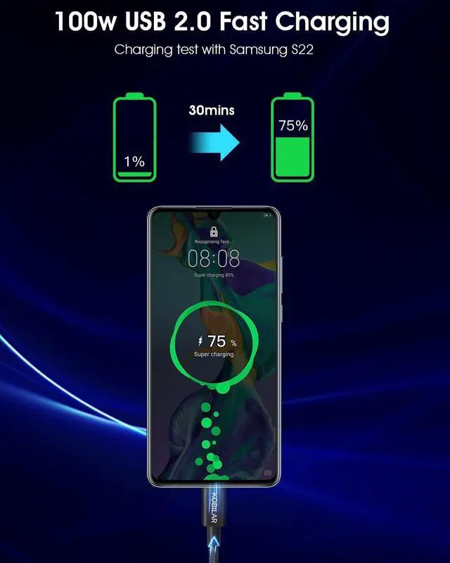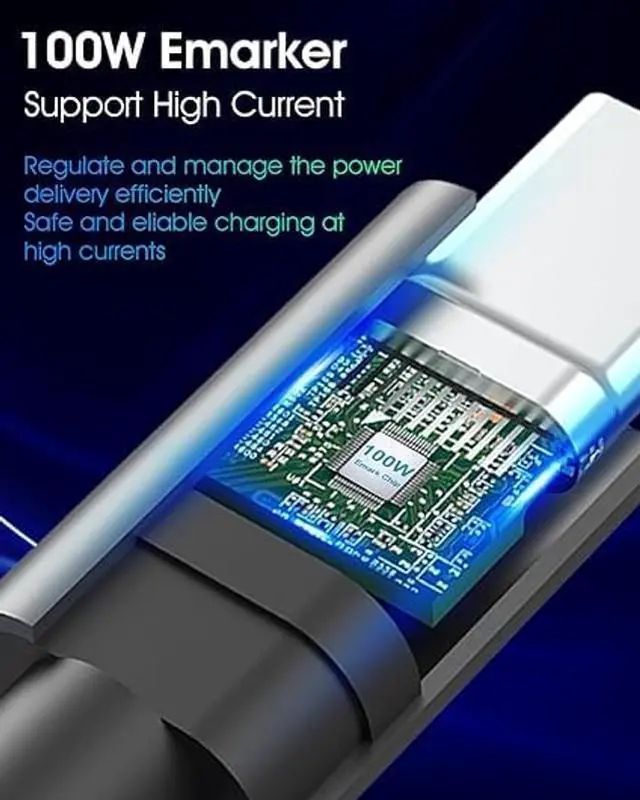 [Fast Charging] USB C to C cable can charge up to 75% in 30 minutes, making it faster than lower wattage type c cables. C to C cable meets the fast charging requirements of most smartphones /tablets. ^^ [Equipped with the E-MAKER chip] USB C to USB C cable enables rapid charging by delivering a higher current output, efficient power transfer, compatibility, enhanced device performance. ^^ [High and Durable Connector] Featured by a sandblasted aluminum shell and unibody plug, USB C to USB C cable provides a high-quality texture and enhance heat dissipation capability.