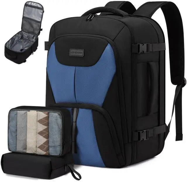 Features: Expandable Large CapacityTravel backpack for men women with expandable design, backpack for travel giving you flexible large capacity, large size from 30L to 40L, Extra large size from 40L to 50L. Carry on backpack has 3 large compartment for your ipad, laptop, clothes and travel essentials. 2 Packing Cubes for Daily EssentialsTravel backpack with 2 cubes for organized storage of sweaters, jackets, pants, shirts, shoes and toiletries. Crafted from water-resistant polyester, it protects your belongings in various weather conditions. 12-Pocket Smart OrganizationThis carry on backpack for men has 12 pockets for iphone, ipad, power bank, laptop, clothes, shoes, sweaters dadily and travel essentials. This travel backpack opens 180 degrees for easy access and hassle-free security checks. Durable, Waterproof & ComfortableMade from tear-resistant polyester fabric, this personal item travel bag is waterproof and durable. Smooth zipper and comfy back padding can great release your fatigue during weekender or long travel. TSA Approve and MultipurposeTSA friendly design, the carry on backpack for men women fits overhead and under seat while on state of standard carry on size, ideal for business or weekend travel, and easily carried on most flights.