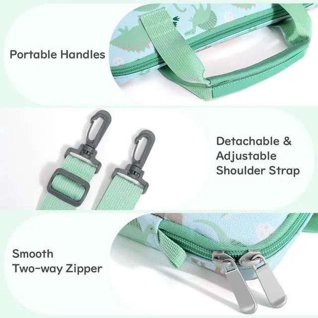^^ Portable and Convenient: This tablet sleeve bag has the option of sturdy fabric handles, and a detachable adjustable shoulder strap, which enables your kids to carry in comfort by their needs. The double zipper design for the main compartment allows convenient access to your precious devices.