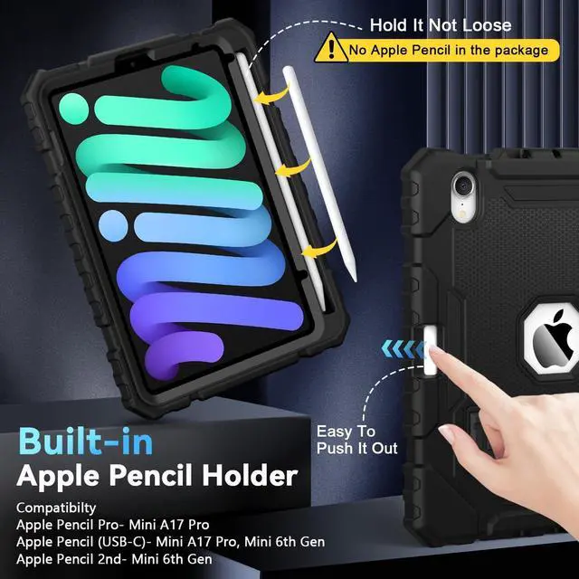 Model Number: (A2993/A2996/A2995/A2567/A2568/A2569). NOT compatible with any other devices. Please check back bottom of youriPad to find the model number. ^^ [Rugged Drop Protection]- Grifobes for iPad mini 7th/6th generation is made of high quality flexible Silicone and durable hard PC provides a great Protection to your tablet against scratches and accidental drops, bumps, shock. ^^ [Functional Kickstand]- Choose optimal vertical and horizontal positions (2 Mode) based on your needs that allows easy access to your favorite shows, movies, and games while on the go. ^^ [Built-in Apple Pencil Holder]- Built-in Slot, keep the Pencil not loose. Store it or take it out within 1 second. Support Apple Pencil (USB-C) and 2nd Gen Apple Pencil for iPad mini 6th (A15 Bionic). Support Apple Pencil (USB-C) and Apple Pencil Pro for iPad mini 7 (A17 Pro) ^^ [Precise Cutouts]- It's easy to access all buttons, speakers, cameras and sensors, all the ports are where they should be. It's also worth offering a practical gift choice for family, friends, students too.