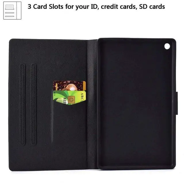 Product Features: 1. Built-in anti-slip slots able to set up multiple horizontal stand angles. 2. 1Made from premium PU leather with soft TPU back shell, provides total front-and-back protection. 3. The magnetic cover works well and does wake the tablet when opened and put it in sleep mode when closed. 4. with built-in 2 card slots, convenient for storing your cards. The magnetic buckle securely protects the tablet. 5. Precise cut-outs and full access to all controls and features. 6. Ultra slim and lightweight design with elegant stylish pattern, which adds minimal bulk.
