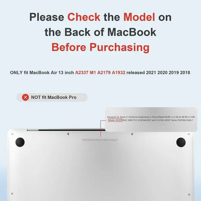 Designed For 2021-2018 MacBook Air 13 inch Case - Only Suitable for 2021 2020 2019 2018 MacBook Air 13.3 Model A2337 A2179 A1932. Notice Not Compatible with 2023 2022 MacBook Air 13.6 ^^ Case Port Precise Cutting Technology Design - it allow full access to all ports, fully access to all buttons and features, plug-in charger, cable, or headphones without removing the cover ^^ Durable hard plastic material - The case uses premium PC to enhance its flexibilityProtect your device from Anti Fingerprints/Anti Drop and Scratch ^^ Easy to install - The case adopts a small buckle design, making it easy to install on your laptop ^^ Package Includes - 1 The Ultra-Thin case, 1 TPU keyboard film, 2 camera covers, 2 USB converters
