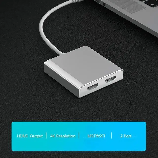 Special InstructionsDisplayPort 1.2 GPU/graphics card is required; GPU/graphics card that supports more than 2 external displays is required; Intel HD Graphics is limited to 3 external monitors; not compatible with Microsoft Surface Dock. ^^ DP to 2 HDMI Divide the computer's Displayport signal into two HDMI signals and transmit them to the monitor, which can output audio and video signals at the same time (PS: The device needs to be powered when it is working) ^^ Extended/Mirror Mode Under Windows system, it supports expansion mode and mirror mode, and the monitor can display the same image or different images; Mac OS system only supports mirror mode, not expansion mode, and the monitor can only display the same image. ^^ Micro USB PowerTo ensure the product can work stably, please connect the Micro USB cable to your 5V power adapter (the package includes the Micro USB cable) ^^ Safe and stable Equipped with a Micro USB power supply cable to ensure stable operation of the device, the metal aluminum alloy shell is sturdy and wear-resistant, and the system is fully protected