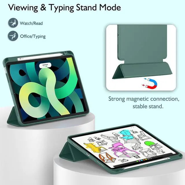 Inch 2020 (Model: A2072 / A2316 / A2324 / A2325). Not compatible with any other devices. ^^ Seamlessly supports Apple Pencil Pro / Apple Pencil 2nd Gen magnetic and wireless charging when case is on. Tri-fold front cover has flip capability to transform the iPad case into a viewing stand and keyboard stand. ^^ Built-in Pencil holder, grab your pencil effortlessly whenever you want, easily to carry your iPad pencil with your device. (Case only, Pencil Holder is Not included! ) ^^ Auto Sleep/Wake Feature - Magnetic smart cover supports auto wake/sleep function. Powerful magnet secures the case closure, easy to snap on and off. ^^ 100% Fit - Precise cutout and design allow easy access to all ports, sensors, speakers, cameras.