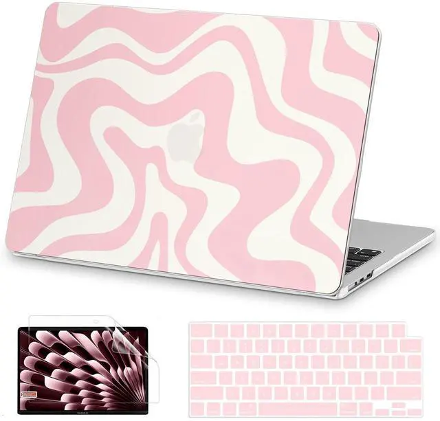 AKIT Compatible with MacBook Air 13 inch Case 2025 2024-2022 M4 M3 M2 A3240 A3113 A2681, Unique Pattern Hard Shell Laptop Case+Screen Protector+Keyboard Cover for MacBook Air 13.6 inch, Pink Wave