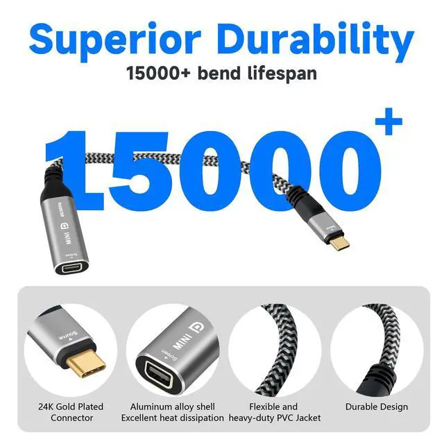 High Quality Materials : This cable uses OFC inner conductor, which has stronger conductivity. The use of 24K gold-plated connectors is more corrosion-resistant. High quality aluminum shells provide better heat dissipation. Durable nylon braided jacket with a bending life exceeding 15,000+, extending service life.