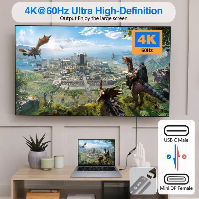 4K UHD ResolutionOur USB C to Mini DP adapter supports up to 4K@60Hz and backwards compatibility 2K, 1080P. More precise visual effects than 2K, making it an ideal choice for high-intensity gaming and movie immersion at a resolution of up to 4K.