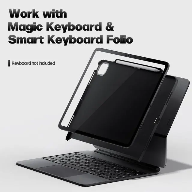 (NOTE: This is a protective case only - it does not include a keyboard, trackpad, Apple Pencil, or screen protector, and it is not a Magic Keyboard case. ) ^^ Magnetic Attachment, Designed for Magic Keyboard Built-in powerful magnets on the iPad case firmly attach your iPad to the Magic Keyboard. With strong magnetic design and smart connector, this 13" iPad Pro case works seamlessly with the Magic Keyboard. The ultra slim form-fitting case never needs to be removed to connect and use the magic keyboard, supports pass-through charging and magnetic attachment.