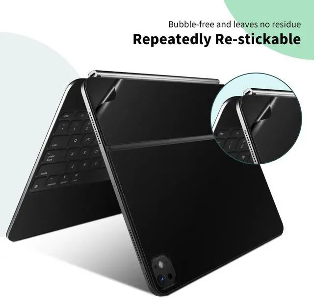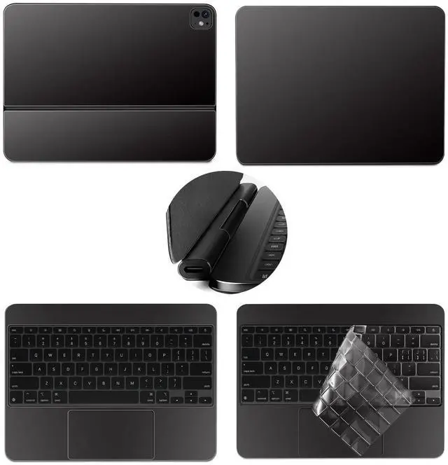 The product is compatible with 2024 iPad Pro M4 (A2836/A2837)11 inch Magic keyboard. The package includes top sticker + palm rest sticker + bottom sticker, spindle stickerTPU keyboard cover and cleaning tools. ^^ Scratch-resistant and Wear-resistant Protect your Magic keyboard from scratches and daily wear, effectively preventing accidental drops of scratches to extend the lifespan of your keyboard. ^^ Easy to installThis product does not need to be cut and is easy to install. If the pasting is not accurate, you can repeatedly paste until it is suitable. Made of high-quality vinyl stickers, ultra-thin 0.2 mm, you can hardly feel its presence, easy to use and will not leave residue when removed.