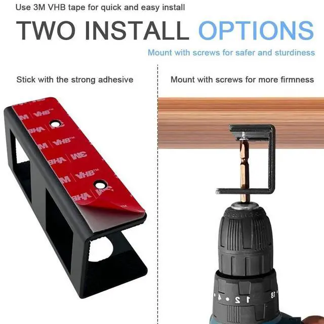 ^^ PREMIUM MATERIALS: Made of hard aluminum, this under desk holder is sturdy and long-lasting. The screws come as premium stainless steel, can be easily installed, reused, and not easily damaged.