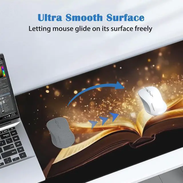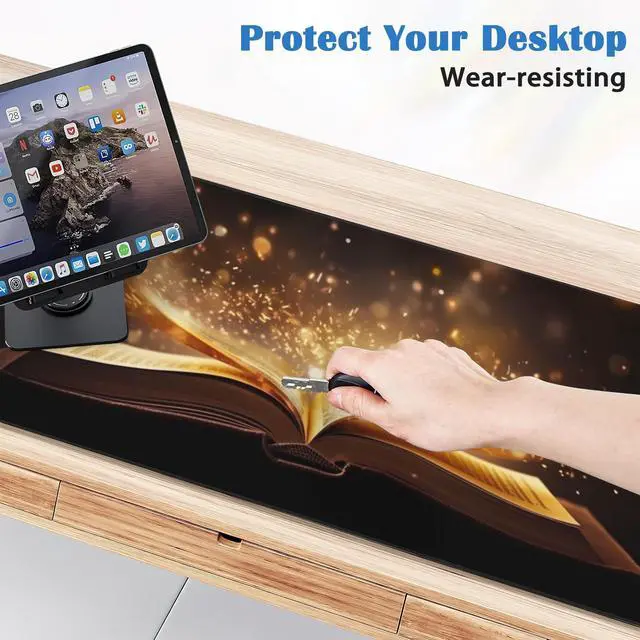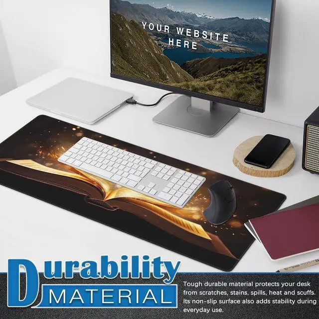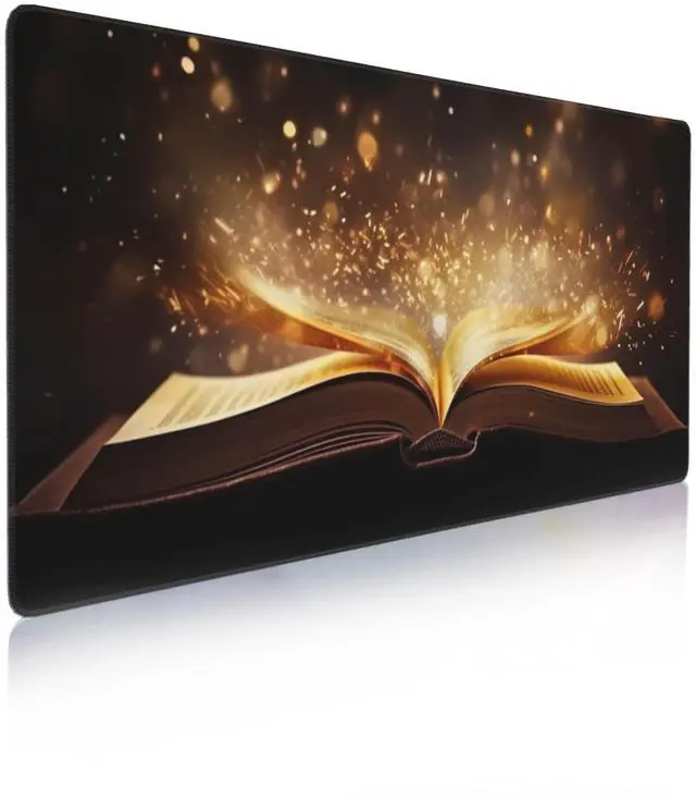Open Book Glowing Text Gaming Mouse Pad,Golden Pages Desk Mat,Non-Slip Rubber Base Large Gaming Mouse Pad for Computer Keyboard Laptop,Desk Decor for Girl,Desk Decor(31.5x15.7 in)