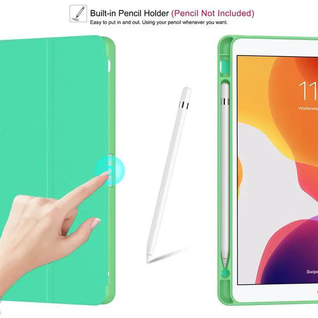 (Tip: Do Not fit with other devices) ^^ [Designed for your Apple Pencil] - Built-in pencil holder, conveniently place and remove your pencil, no longer worry about losing or breaking. Keep the Apple Pencil safely in your cover (Pencil is Not included) ^^ [Designed for Full Protection] - Made of durable PU leather exterior & soft microfiber lining & flexible TPU back shell for iPad 9th/8th/7th generation provide full protection against fingerprints, shocks, bumps and scratches ^^ [Designed for Auto Sleep/Wake] - Inner magnetic strip, easy snap on and off, can ensure the auto sleep/wake function engages quickly every time. Help you extend for the ipad 9/8/7 gen standby time and reduce the loss of battery ^^ [Designed for Trifold Stand] -Two angles are provided that you can easily prop up for the ipad 9th/8th/7th gen 10.2 inch with dual standing positions for enjoying the most comfortable keyboard-typing and movie-viewing