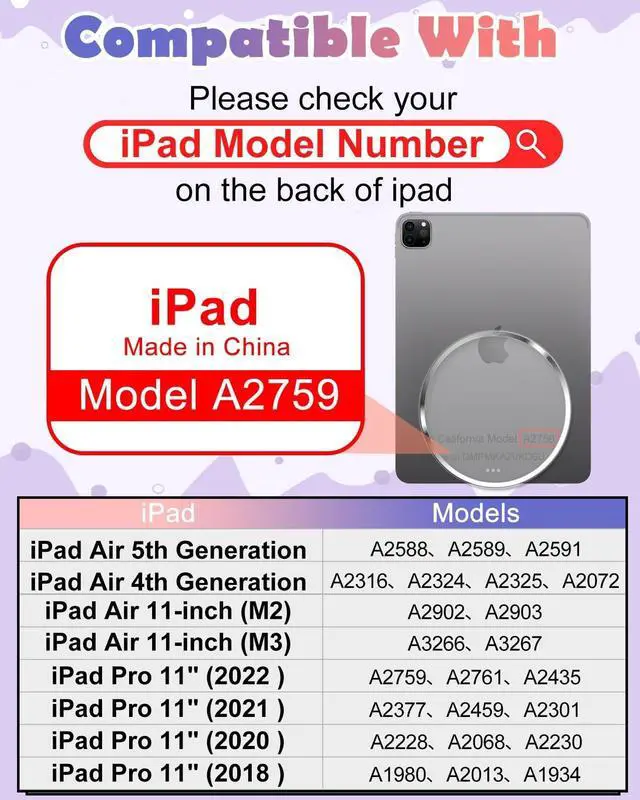 Compatible with: This black silicon case only for iPad Air 5th gen case 10.9 2022, for iPad Air 4th gen case 10.9 2020, for iPad Air 11 inch M2/M3, for iPad pro 11 case 2018/2020/2021/2022.