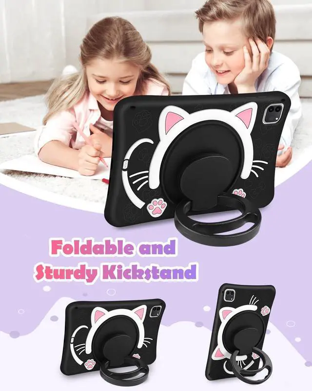 Cute Design: This for apple ipad air 5th/4th generation 10.9 case, for apple ipad pro 11 case has cartoon and cute cat design which makes your table case looks distinctive. This is a best choice for kids, children, girls, family ^^