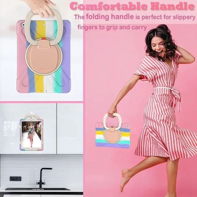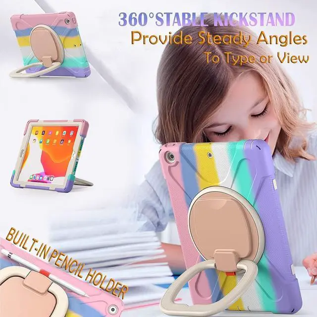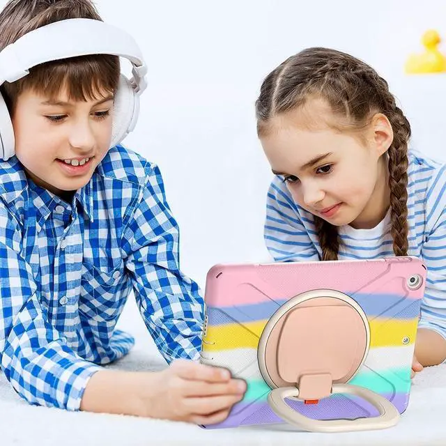 • Heavy Duty Shockroof case for kidsMade of shockproof PC & soft silicone,unique shock-proof design keeps your iPad case for kids better protected to avoid daily bumps,scrapes,accidental drops,unbreakable!