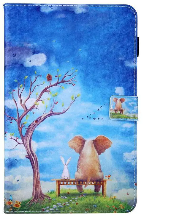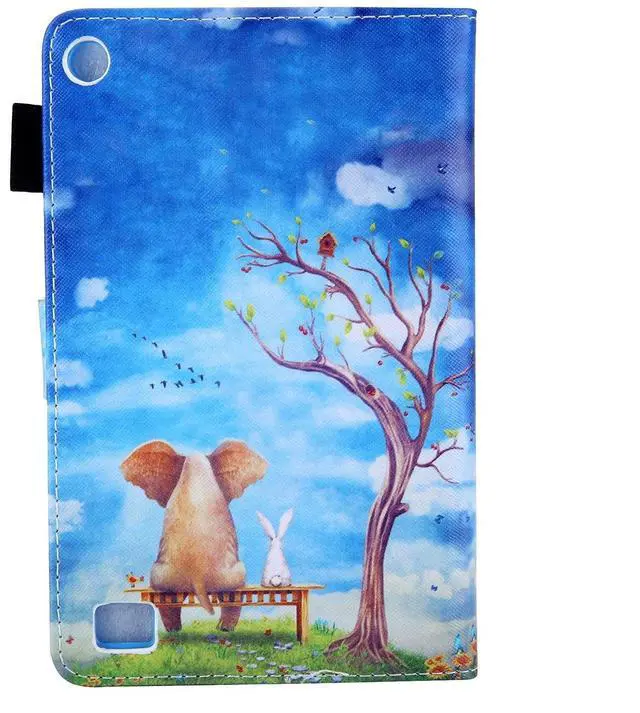 UUcovers All-New 7" Kindle Fire 7 Tablet Case (9th/7th/5th Generation, 2019/2017/2015), Smart Stand PU Leather Magnetic Cover with Card Pocket Pencil Holder [Auto Sleep/Wake], Elephant Rabbit