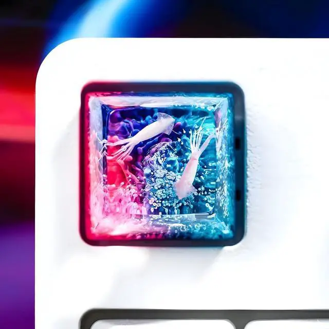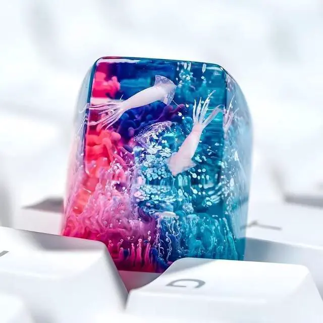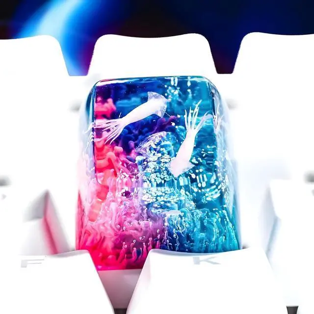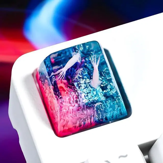 Squid Artisan Keycap Pink Blue Coral Reef R1 SA Profile Custom Sea Creatures Keycaps 1U ESC Handmade Gaming Ocean Resin Key Cap Cherry MX Switch Compatible Mechanical Keyboard Squid Lover Gift