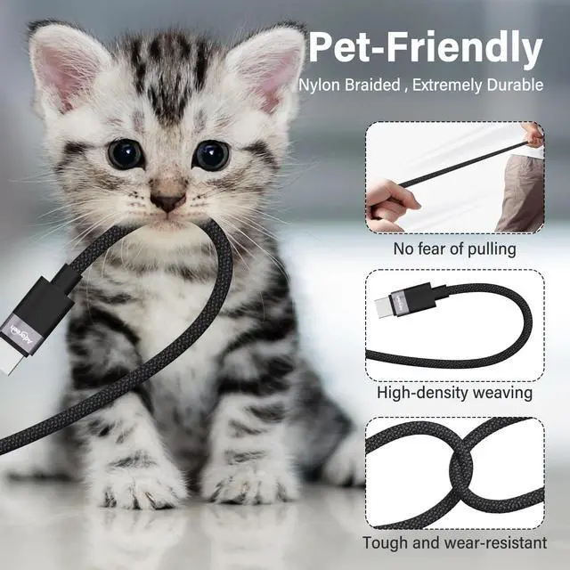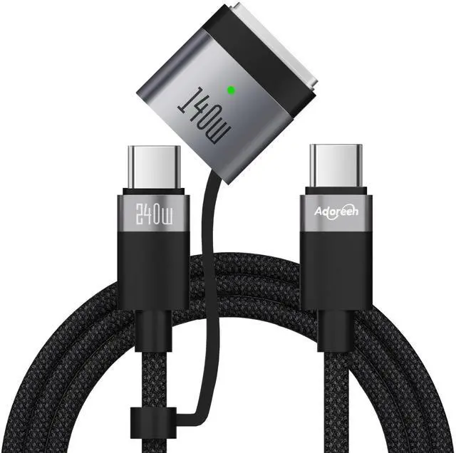 Adoreen 140W USB-C to C Cable with Magnetic 3 AdapterMagnetic connection ensures stable charging, preventing disconnection due to pulling or accidental situations, effectively protecting your MacBook. The LED light shows amber during charging and turns green when fully charged, allowing users to easily monitor the charging status in real-time. Made with high-strength braided cable, ensuring long-term durability without easy breakage, resistant to wear, and damage from pets or rodents. Ultra-fast charging speed, supporting PD 3.1 protocol, charging up to 60% in 30 minutes when used with a 96W or 140W adapter.