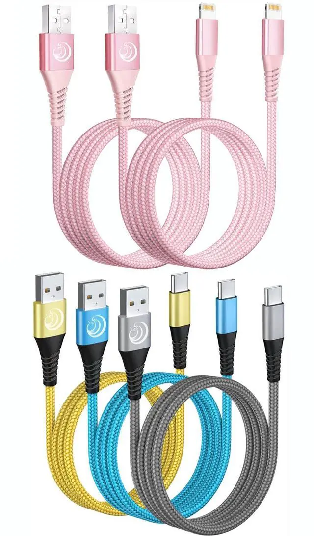 Package Content: Pack of 2 iPhone charger cables[6ft+6ft, pink] and Pack of 3 USB C Cable [6ft+6ft+6ft]