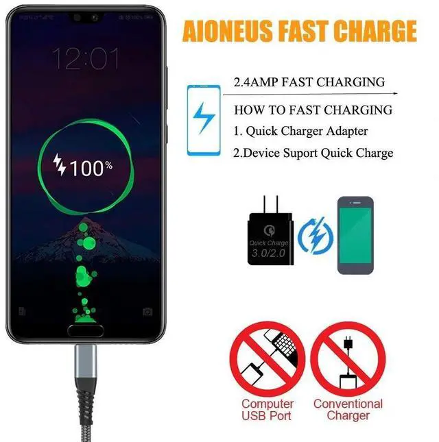 Aioneus charging cable with safe certified and high quality rapid charging at 3A Maximum, quick connect and high speed data transfer speed up to 480Mb/s helps you work efficiently