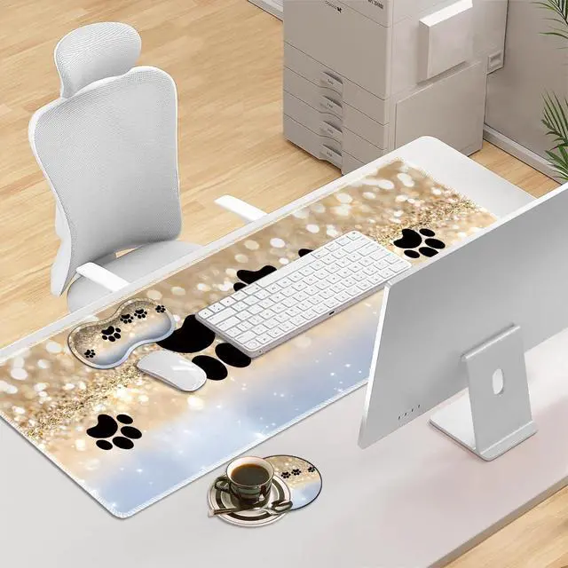 Includes: 1 x Large Mouse Pad with Stitched Edge ( 31.5 x 11.8 inches)1 x Mouse Pad Wrist Support1x Coffee Cup CoasterProduct Features: This 3-in-1 big mouse pad game set helps to improve the gaming experience or work efficiency in the office. Excellent memory foam filling that conforms to your wrist for maximum comfort and support and helps reduce pain. Our wrist support sets can also be cleaned repeatedly, easy to dry, comfortable and durable. The edge of the mouse pad is exquisite to prevent wear, deformation and degumming during long-term use. It is designed for both safety and durability. We are committed to providing customers with high quality products and excellent service. If you are not satisfied with our product, we can exchange it for a new one or give you a 100% refund.