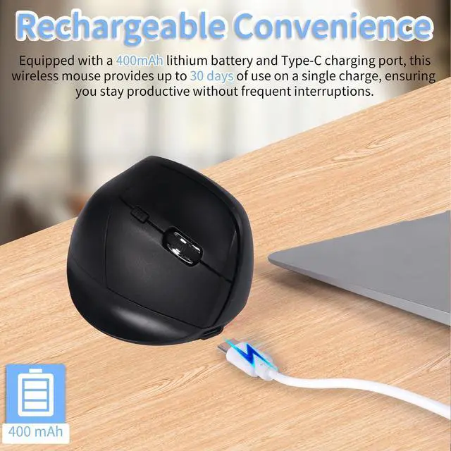 ^^ **Rechargeable Convenience**: Equipped with a 400mAh lithium battery and Type-C charging port, this wireless mouse provides up to 30 days of use on a single charge, ensuring you stay productive without frequent interruptions.