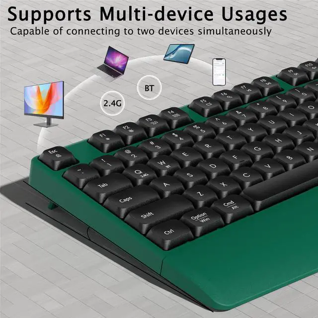 The 2.4GH z wireless technology provides a reliable connection with a range of up to 33 feet, ensuring smooth and consistent performance. ^^ This keyboard is compatible with multiple devices, including Windows, macOS, and more. Whether you're using it on a desktop, laptop, or tablet, it guarantees seamless performance, making it a versatile addition to any workspace.
