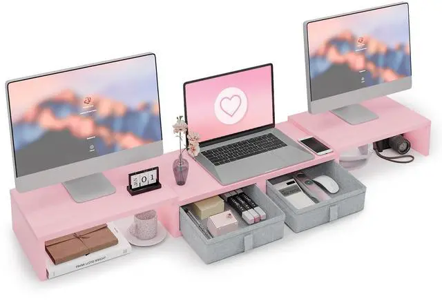 Multifunctional Stand: TEAMIX Monitor Riser is stable and adjustable, it can even be split into two independent stands. It can be a monitor/computer stand, TV stand, Laptop Stand. It will be a good helper in your life and office. ^^ Adjustable