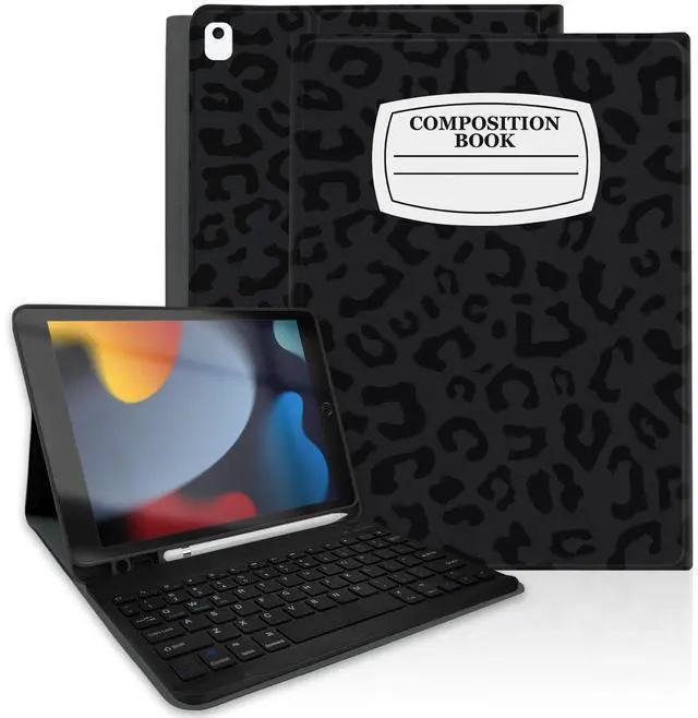 TopPerfekt for iPad 9th Generation Keyboard Case 10.2" 2021, Magnetically Absorbent, Auto Sleep/Wake, Pencil Holder for iPad 8th Gen 2020, 7th Gen 2019, Air 3rd, pro 10.5" (Notebook Leopard Black)