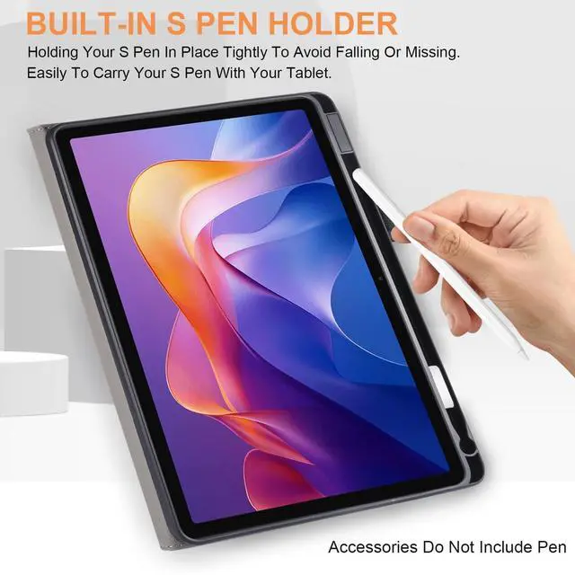 Built-In Pen Holder: Built-In Stylus Holder That Holds Your S Pen Securely In Place To Prevent Drops Or Missing. 4. Built-in elastic hand straps increase the safety of one-handed operation. 5. The elastic fastening band on the back fixes the front cover, preventing accidental opening and scratching the screen. 6. Allows you easy access to all tablet functions such as charging port, camera, speakers, volume and power buttons without removing the case.