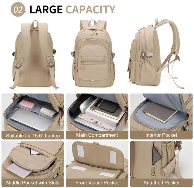 Additionally, a hidden anti-theft pocket on the back panel offers a safe place for valuables like your phone or wallet ^^ -Durable and Water-Resistant- --Built from strong, water-resistant polyester and smooth zippers, this backpack protects books, electronics, and essentials from light rain, making it reliable for work, leisure day, summer or winter vacation, and commuting ^^ -Versatile Occasions- --Optimal for college, work, shopping, and short trips, this backpack complements any outfit with a versatile and modern design. Suitable for young women and men, its the everyday choice for both style and functionality