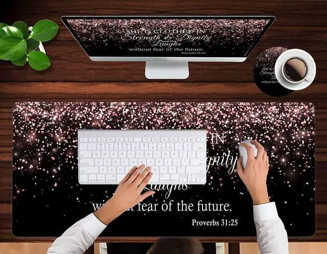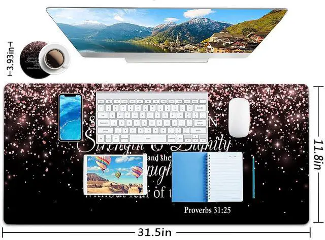 Extended Large Mouse Pad SizeThis desk pad ( 31.5" 11.8" )for keyboard and mouse, is large enough to fit your mouse, gaming keyboard, and other desk items. Keep a clean, uncluttered desk. This helps to improve the gaming experience or work efficiency in the office. Besides, you can also use this extended mouse pad as a desk pad, writing pad, platform protection mat. ^^ Non-Slip Rubber BaseThe bottom base of the full desk mouse pad is made of good natural rubber, which is no harm to human heath.