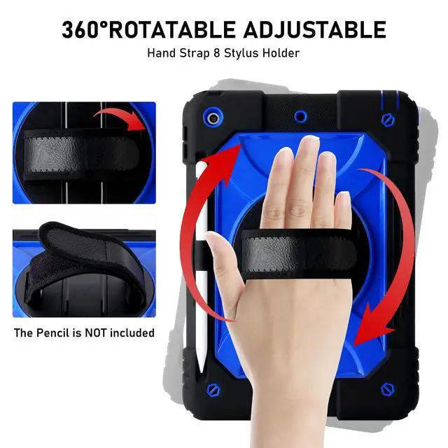Portable Shoulder Strap: Keep your Apple Pencil (not included) secure and easily accessible in the integrated holder. The adjustable and removable shoulder strap allows you to carry your iPad hands-free, perfect for travel, commuting, and outdoor adventures. Easily attach the strap to any two corner holes to hang it on the back seat of a car for child entertainment during journeys. ^^ Heavy-Duty Rugged Protection with
