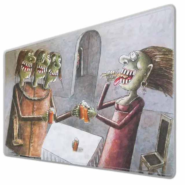 Y YIHANGBEST Halloween Monster Mouse Pad Keyboard Mat Green Three-Headed Monster Drink Beer Large Gaming Mousepad for Desk,Computer,Office 35.4"X15.7"