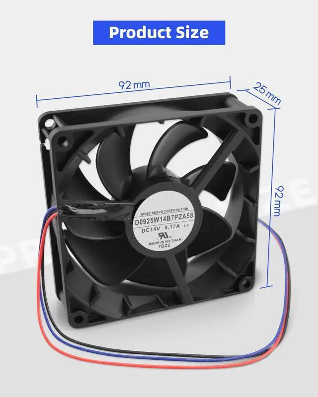 Product specification 14V 0.17A 92X92X25mm IP55Color: BlackMaterial: ABS plasticBuyer's noteIf you have any inquiries about model or installation or other aspects, please feel free to contact us