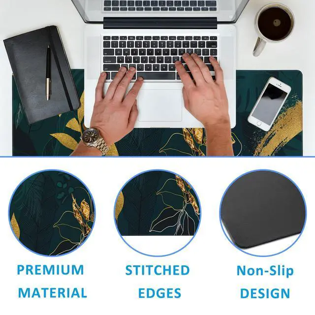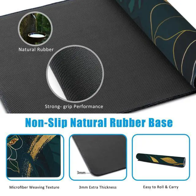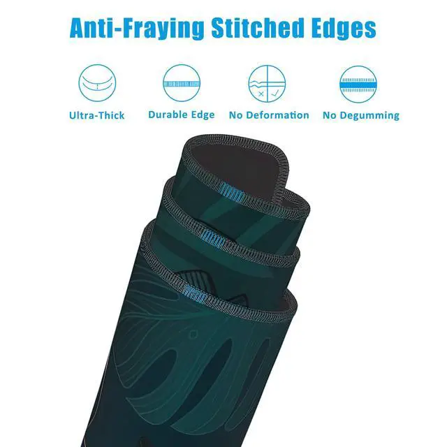 • Special DesignThis large mouse pad is crafted with a slip-resistant rubber base, which effectively prevents the mouse and keyboard from sliding and moving.Desk mat with durable stitched edges ensures the mouse pad will not degum or deform during use