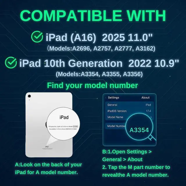 Protection for Kids: The NidoPaz Kids Case is specifically designed for the Apple iPad A16 11-inch 2025 and iPad 10th Generation 10.9" 2022 models. This case is compatible with the following models: A3354, A3355, A3356, A2696, A2757, and A2777. Built with a rugged hard PC + silicone combo, this iPad 10th generation case for kids offers superior protection against drops, bumps, and scratches. Keep your device safe, even with the roughest handling, thanks to its shock-absorbing structure and durable materials. Perfect for active children! ^^