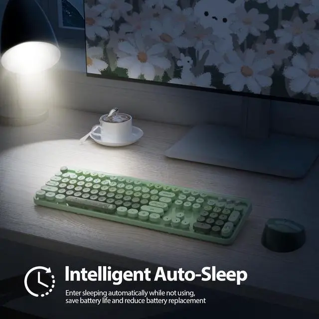 ^^ Auto-Sleep Mode: The wireless typewriter keyboard operates on 1 AA battery, and the wireless mouse uses 1 AA battery (included). Both enter auto-sleep mode after minutes of inactivity to save battery lifeenabling 2-3 months of use (battery life may vary).