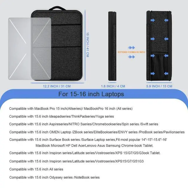 Size & Compatibility: The computer backpack size is 16.34 x 12.2 x 1.57 / 5.51 inches (L x W x H); Small case size is 8.28 x 4.72 x 1.77 inches; compatible with the MacBook Pro 16-inch M4/M3/M2/M1, all 15" MacBooks, XPS 16/15, and most 15- 15.6 -16 inch laptops, Chromebooks, and tablets ^^