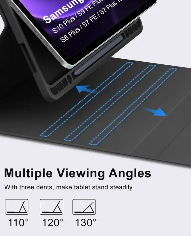 CompatibilityDesigned for Samsung Galaxy Tab S10 Plus / Tab S9 Plus / S9 FE Plus / S8 Plus / S7 FE / S7 Plus 12.4 inch : Tab S10 Plus (Modelo: SM-X820/X826B/X820N/X826N) Tab S9 Plus/S9 FE Plus (Modelo: SM-X810/X816B/X610/X616B) Tab S8 Plus (Modelo: SM-X800/X806/X806B/X806U/X806N) Tab S7 Plus (Modelo: SM-T970/T976B/T975) Tab S7 FE (Modelo: SM-T730/T733/T736B/T735) You can check the model number before purchasing to make sure you get the correct size tablet keyboard case.