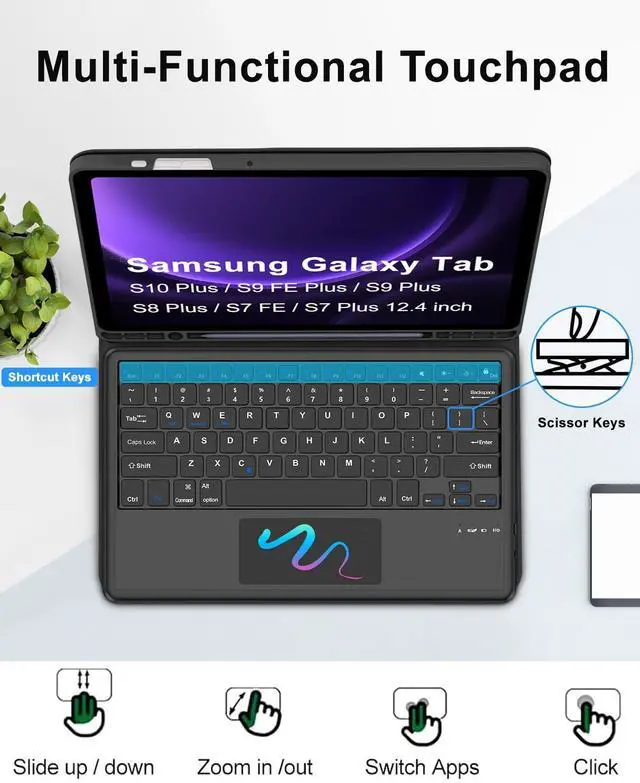 Multi-Touch TrackpadGalaxy tab s10 plus keyboard case equipped wi