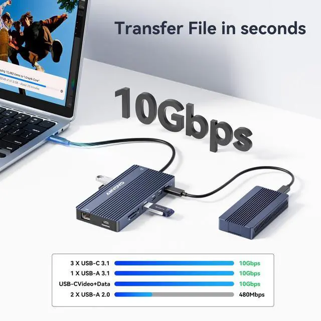 High-Speed Data Transfer: Equipped with a total of 7 USB portsincluding 4 USB-C (one of which supports video transmission) and 3 USB-Aall delivering speeds of up to 10Gbps for lightning-fast file transfers in seconds. The built-in SD/TF card readers allow you to quickly import and access photos and videos directly on your laptop. ^^ Gigabit